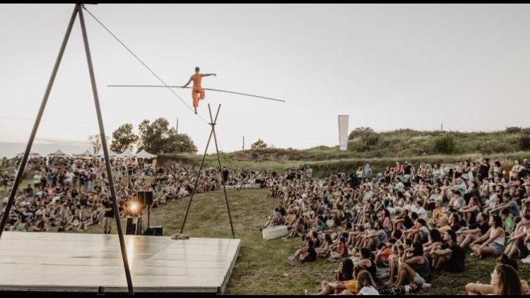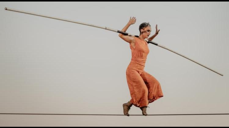 H is a waltz in two, a character and his essential element, the balancier who gives him life. It is a dance of forces that reveals to us the weaknesses and needs of its protagonists in order to exist; the yearnings and internal struggles that define their lives; the rem, the struggle, a struggle and the inevitable fractures. At times, it is a thin layer and at other times, a weight clutched in the unconditional arms of a mother. Two voices out loud, silent of words. La Corcoles is the universe created by the artist Mariona Moya, who specialises in balancing on a tightrope. Circus, dance and street theatre are their means of expression. With a very personal style, La Corcoles stands out for their way of understanding balancing, investigating movement on cable and discipline from dance.