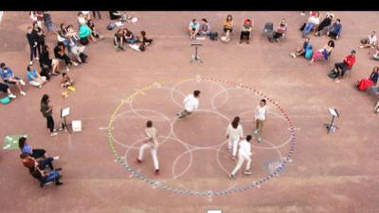 Body, matter, time, space and relationships are the key concepts of this human installation: one hundred and twenty body structures in which the interpreters are both builders and materials. Ephemeral architectures that emerge from a precise mathematical protocol based on random and symmetrical operations, and which are the result of the traction and compression efforts of the participating bodies. A coral balance.